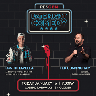 DATE NIGHT COMEDY 2026 features illusionist, comedian, and America's Got Talent winner, DUSTINTAVELLA, alongside comedian and pastor TED CUNNINGHAM.